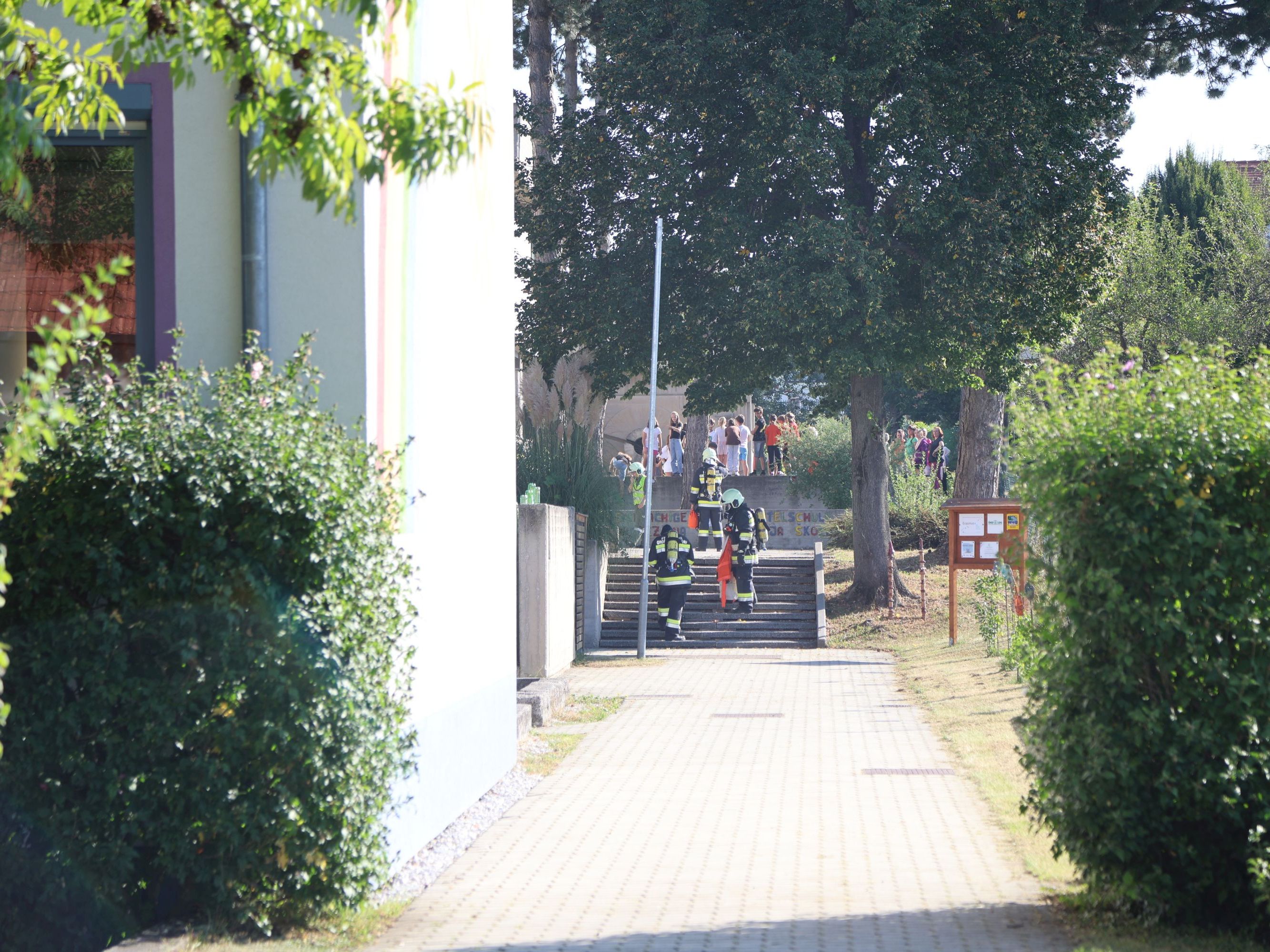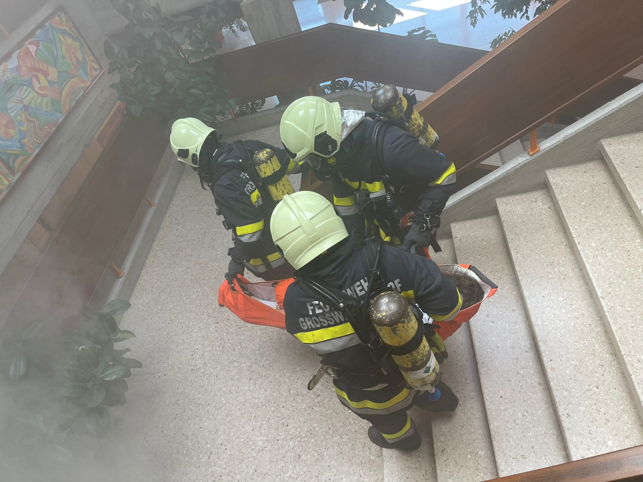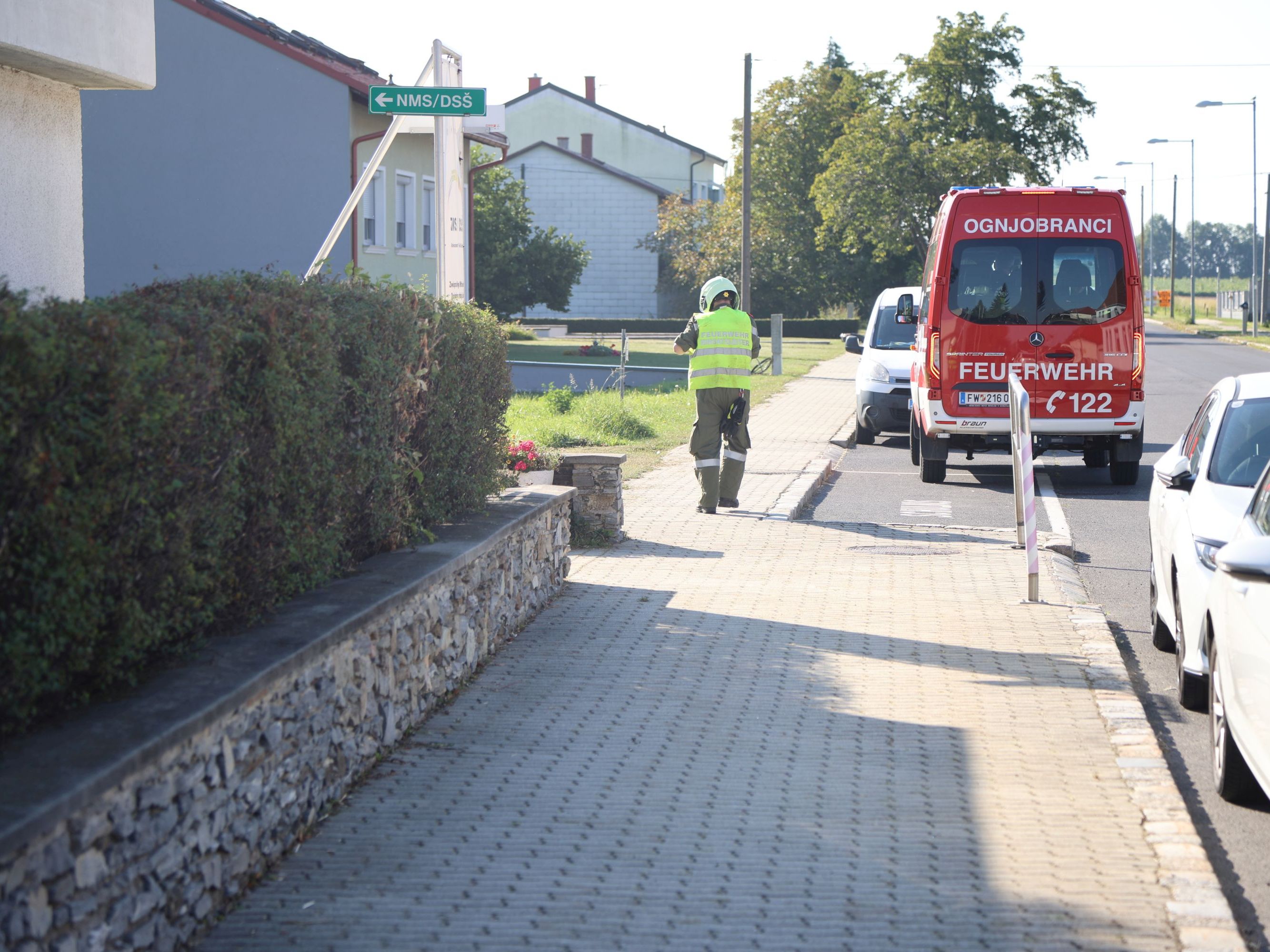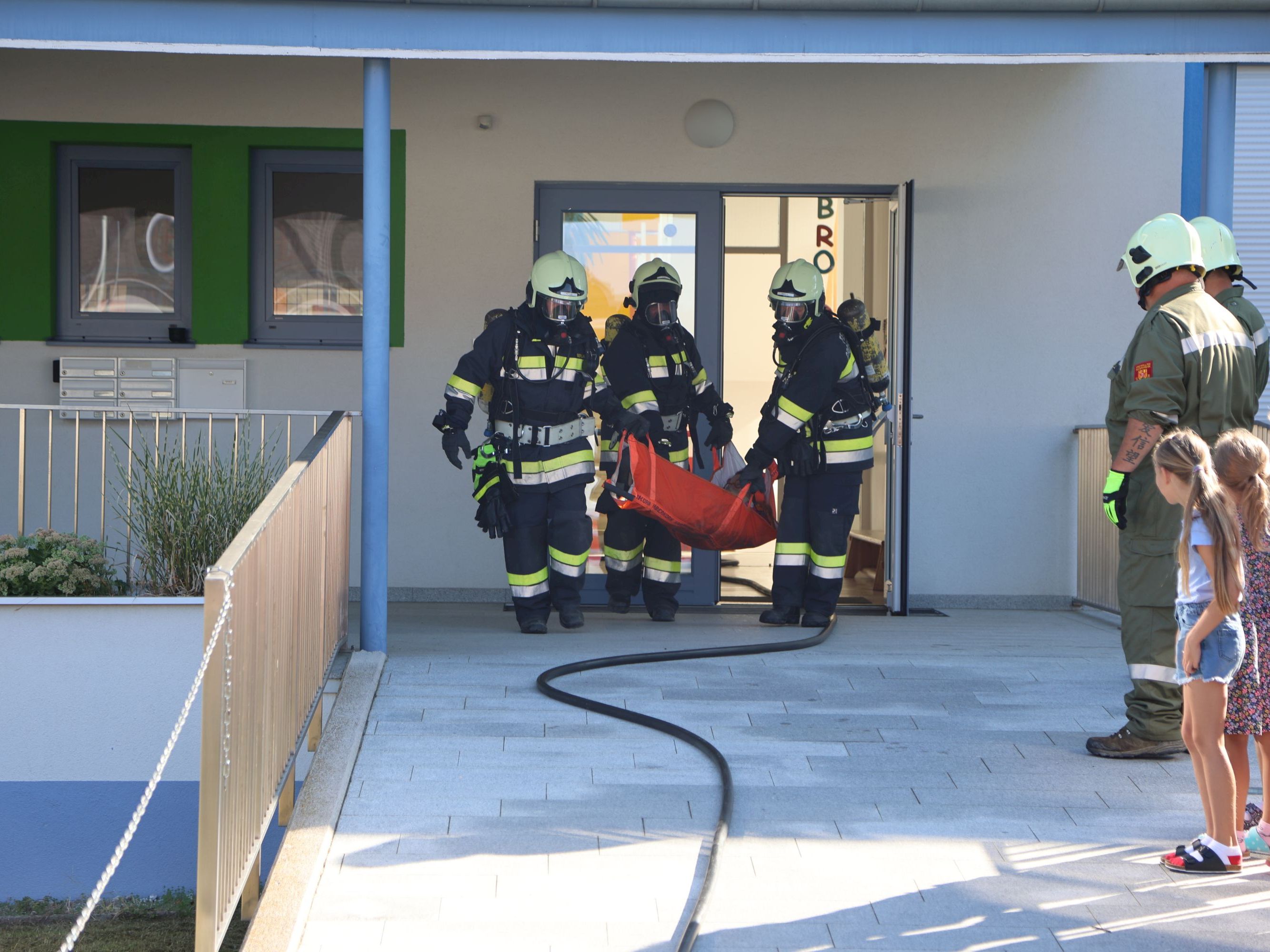 Am Freitag Vormittag hat die Feuerwehr Großwarasdorf, unterstützt durch die Nachbarwehren Kleinwarasdorf und Nebersdorf, eine Brandschutzübung in der Volksschule (VS) und der Zweisprachigen Mittelschule (ZMS) in Großwarasdorf durchgeführt. Das Ziel dieser Übung bestand darin, im Ernstfall die Brandobjekte rasch zu evakuieren sowie unter schwerem Atemschutz nach vermissten Personen zu suchen. Hierfür wurden zwei Atemschutztrupps eingesetzt, von denen der erste in der VS mit der Rettung einer vermissten Person begann. Dieser stieß anschließend als Unterstützung zum zweiten Trupp hinzu, welcher zeitgleich in der ZMS nach vier weiteren Personen suchte. Gemeinsam konnten zügig alle Vermissten aus der Gefahrenzone befreit und in Sicherheit gebracht werden. Insgesamt nahmen neben 24 Feuerwehrmitgliedern mit 4 Einsatzfahrzeugen, das Lehrpersonal und die Schüler:innen aller Schulstufen im Ausmaß von 116 Personen an der Übung teil.