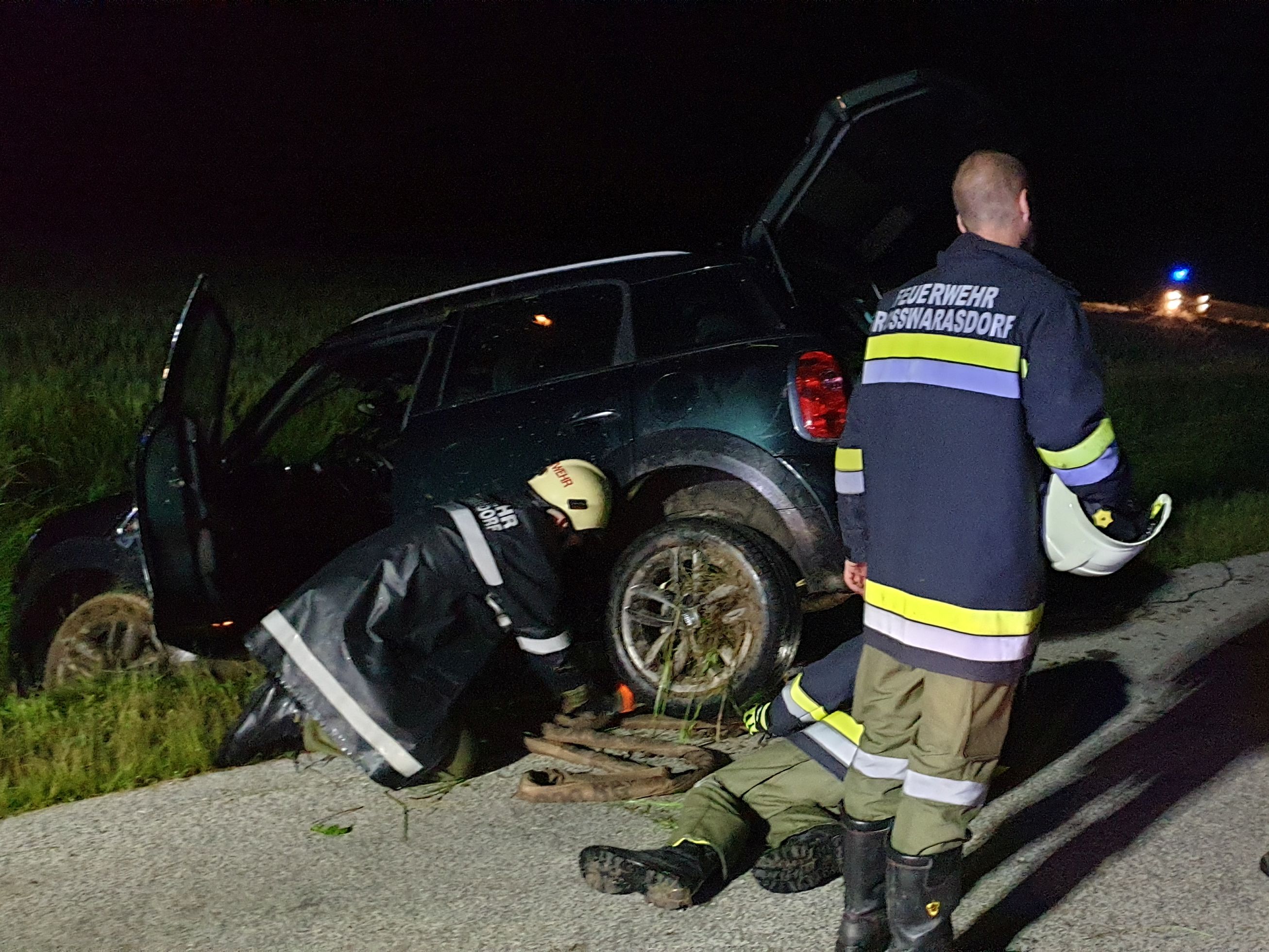 Um kurz vor 3 Uhr morgens wurde die Feuerwehr Großwarasdorf zu einer Fahrzeugbergung auf die L245 Richtung Langental alarmiert. Ein PKW war von der Fahrbahn abgekommen und am Dach im Graben liegen geblieben. Verletzt wurde dabei niemand. Mithilfe der Seilwinde wurde das Fahrzeug aus dem Graben gezogen und anschließen abseits der Straße gesichert abgestellt. Für die Dauer der Bergung musste die L245 gesperrt werden. Nach anschließender Reinigung der Fahrbahn konnte die Straße wieder freigegeben werden.